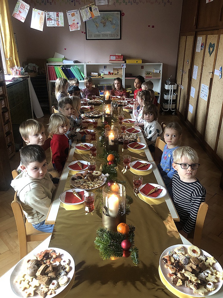 Wir freuen uns auf die gemeinsame Adventfeier mit den Eltern und Geschwistern. Während der Adventzeit haben wir nicht nur Kekse gebacken. Wir haben auch viele Lieder und Tänze gelernt. Das dürfen wir heute vorzeigen! Und tatsächlich hat das Christkind für uns etwas da gelassen. Gemeinsam packen wir es mit viel Lachen und Freude aus. Danke liebe Eltern!